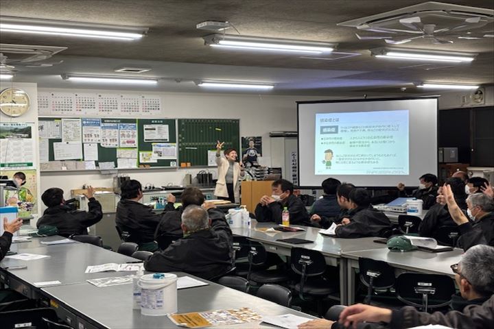 従業員の健康づくりを応援するため、協会けんぽ宮城支部様協力で、 12月18日(水)にからだマネジメントセミナー「免疫力向上」を本社会場で開催しました。当日は、スポーツクラブルネサンスのパーソナルトレーナーのお二人にお越しいただき、感染症が発症・重症化しないようにするには『免疫力』が大事という事を学びました。また、健康づくりの土台を整えるという事で、食生活を良くする方法では、5色をバランスよく食べることを、しっかり休める休養方法では、リラクセーションのための複式呼吸法を、体を整える運動方法では、血流の向上・代謝アップを目指し実際に体を動かして取り組みました。当社は、健康経営優良法人を2020年度から5年連続で認定を受けており、今後も従業員の健康づくりに繋がる応援を行ってまいります。トレーナーさんご指導ありがとうございました。