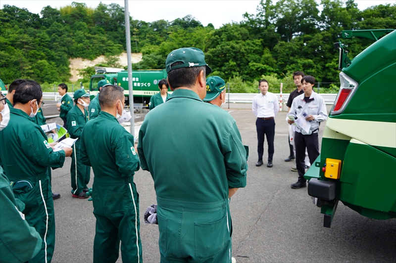 6月13日(火)・6月21日(水)の2日間に分けて、ごみ収集車の架装メーカーの極東開発工業株式会社のご担当の方にお越しいただき、操作方法や最近のヒヤリハットなどについての安全講習会を開催しました。この先も、安全運転・安全作業で事故怪我がないように努めてまいります。本日もご安全に。