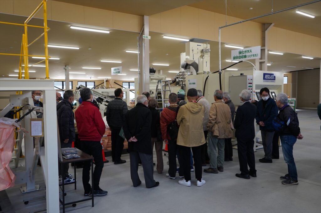 仙台市では町内会等と連携を図りながら、地域でのごみの適正な排出や減量、リサイクル等の取り組みのリーダー役として、中心的に活動していただくクリーン仙台推進員制度を展開しています。3月14日(金)にクリーン仙台推進員24名の皆さんがスキルアップ研修会(上級コース)の施設見学として、使用済み太陽光パネルリサイクル施設エコロジーセンター愛子に見学に見えました。太陽光パネルがリサイクルできることや施設が仙台市内にあること自体を知らなかった、という声もあり、エコロジーセンター愛子の意義や考えを専務渡邊が説明し、笑いもありながらの体験見学をしていただきました。