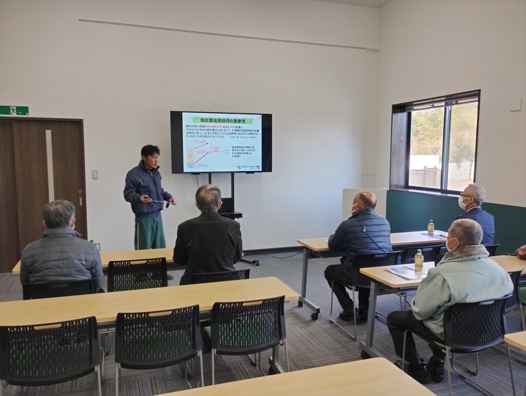 12月17日(水)、仙台市の「環境施設を見る会」に登録されているエコロジーセンター愛子へ、一迫地区公衆衛生組合連合会の皆さま5名が、今年最後の視察にお越しくださいました。当日は、当施設の概要に加え、再生可能エネルギーの重要性や、エコロジーセンター愛子が果たす役割とその意義についてご紹介しました。続いて施設内をご案内し、太陽光パネルのリサイクル工程をご覧いただくことで、理解を深めていただきました。