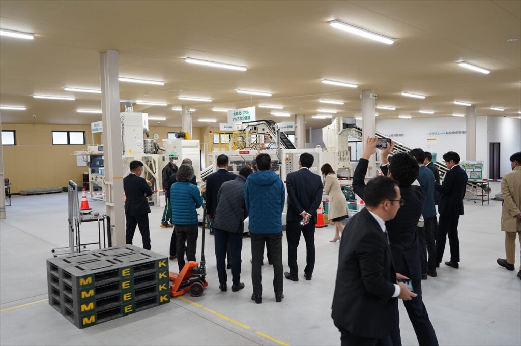 次代を担う青年経営者等で構成される同青年部17名の皆さまが11月8日(金)にエコロジーセンター愛子の視察に見えられました。弊社社長砂金が当社の脱炭素経営と当施設の導入の背景と経緯を説明し、VTRの視聴、その後施設の作業工程における機械の稼働する様子を見学体験していただきました。お越しいただいた皆様からは、工程内での手作業による質問や可能なパネルのサイズ等の質問があり、雇用や資源循環の重要性について理解を深め情報を共有しました。宮城県中小企業団体青年部連絡協議会の皆様、遠くまでお越しいただき誠にありがとうございました