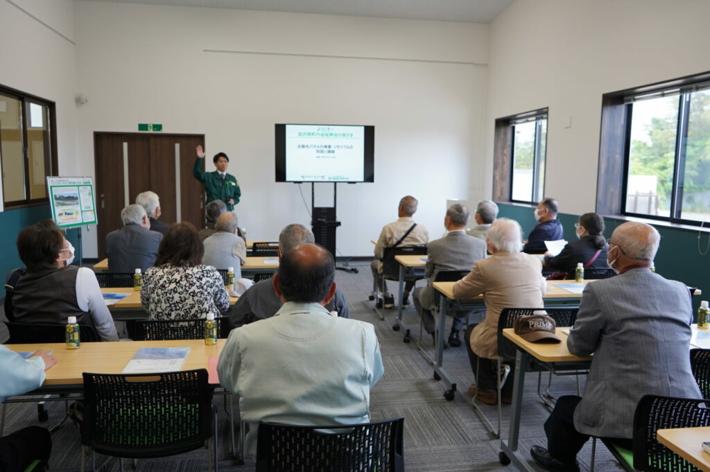 仙台市の“環境施設”として登録されている当施設に、令和7年度第2回目となる見学団体の皆さまがお越しくださいました。5/20日(火)、総勢15名の富沢地区延寿会の皆さんがワケルくんバスで来所しました。現在の国内におけるエネルギー事情を踏まえた再生可能エネルギーの重要性や、エコロジーセンター愛子が果たす役割とその意義についてご説明した後、施設内を見学していただきました。資源循環の重要性について、より多くの方々に理解いただけるように伝えていきたいと思っています。