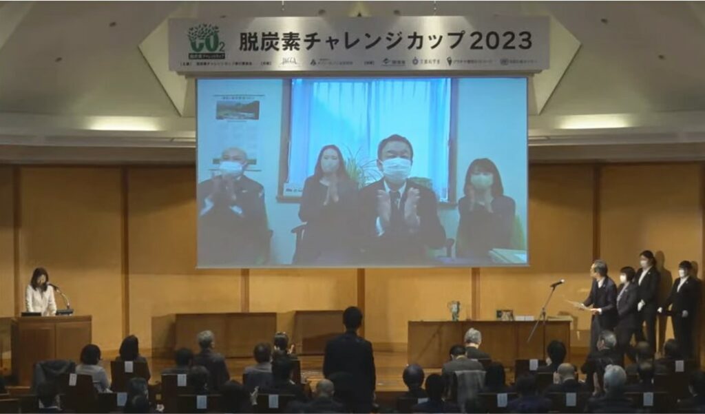 「脱炭素チャレンジカップ」((一社)地球温暖化防止全国ネット、(一財)セブンイレブン記念財団共催)は、学校・団体・企業・自治体などが展開している脱炭素を目的とした地球温暖化防止に関する地域活動について、書類審査、プレゼンテーション審査を行い、優れた取り組みを表彰している全国大会です。当社は令和5年2月16日の最終審査のファイナリストとしてプレゼンテーションを行い、再エネ100宣言RE Action賞を受賞しました。