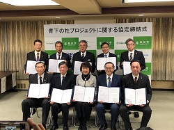 弊社の地元、青葉区熊ヶ根の「青下水源地」を保全・育成する官民連携事業 『青下の杜プロジェクト』に関する協定を仙台市と締結しました。 令和2年4月より3年間、市水道記念館北側の水源涵養林の保全育成に取り組んでまいります。