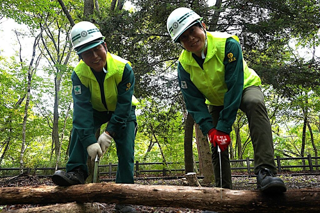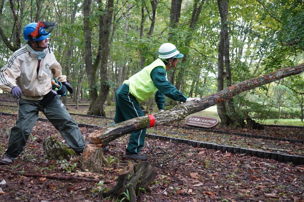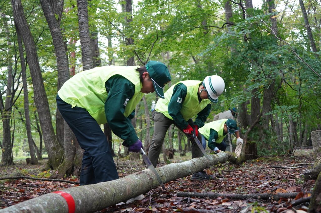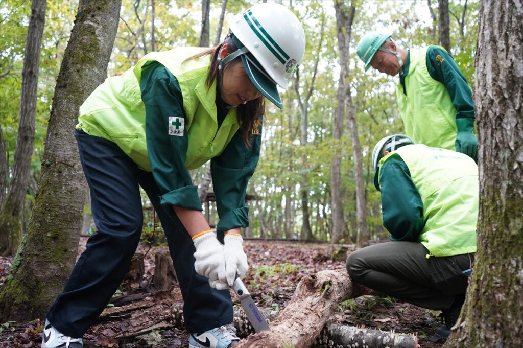 水源涵養林の保全保護により良好な自然環境を創出する青下の杜プロジェクト。9月20日(土)に当社が参画している青下の杜プロジェクトの森林作業として間伐作業が開催されました。直径15㎝はある木を切るのはかなり大変でしたがエリア内の5本の朽ち木を含めた間伐を行いました。