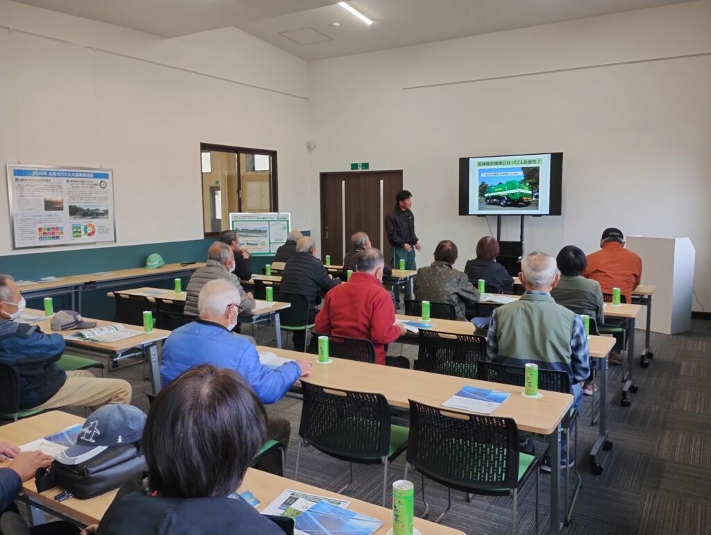 11月13日(木)、仙台市の「環境施設を見る会」に登録されているエコロジーセンター愛子に、利府町環境美化推進委員の皆さま18名が見学にお越しくださいました。当日は、当施設の概要に加え、再生可能エネルギーの重要性や、エコロジーセンター愛子が担う役割とその意義についてご説明しました。その後、施設内をご案内し、太陽光パネルのリサイクル工程を実際にご覧いただくことで、理解を一層深めていただきました。