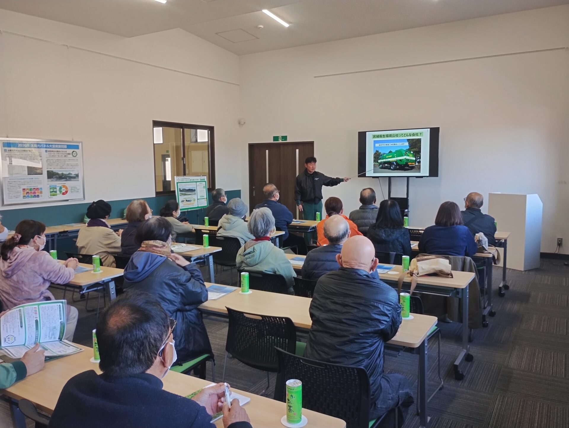 11月19日(水)、仙台市の「環境施設を見る会」に登録されているエコロジーセンター愛子に、沖野中河原町内会(仙台市環境施設を見る会)22名の皆さまが見学にお越しくださいました。当日は、当施設の概要に加え、再生可能エネルギーの重要性や、エコロジーセンター愛子が担う役割とその意義についてご説明しました。その後、施設内をご案内し、太陽光パネルのリサイクル工程をご覧いただくことで、理解を深めていただきました。