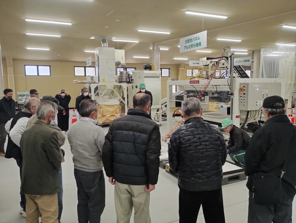 参加された皆様からは幅広いご質問をいただき、特に使用済み太陽光パネルの処分に関する関心が高く示されました。本視察を通じて資源循環の重要性への理解が深まり、情報共有の場として大変有意義なものとなりました。丸森町金山地区公衆衛生組合の皆様、お越しいただき誠にありがとうございました。