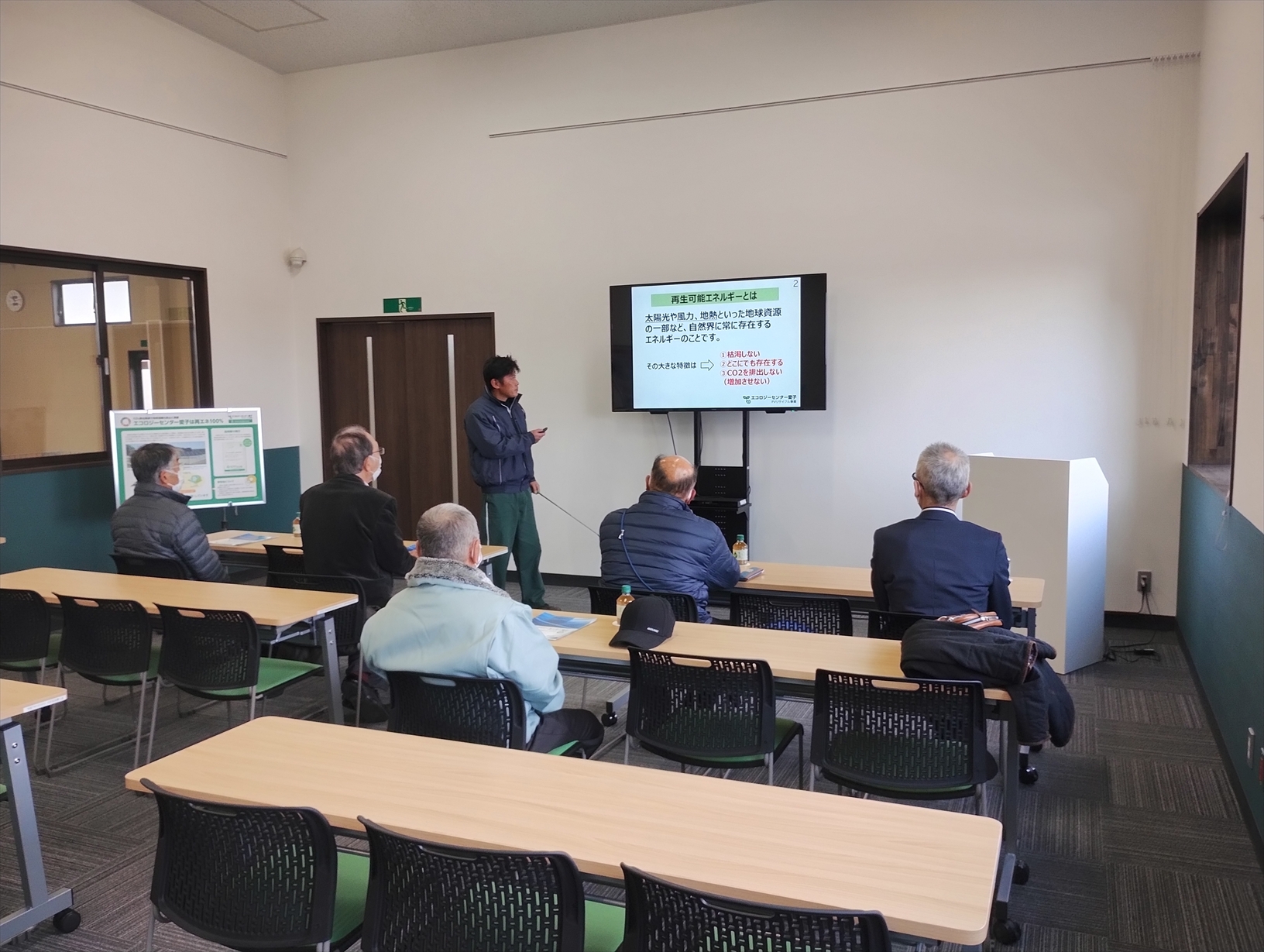 12月17日(水)、仙台市の「環境施設を見る会」に登録されているエコロジーセンター愛子へ、一迫地区公衆衛生組合連合会の皆さま5名が、今年最後の視察にお越しくださいました。当日は、当施設の概要に加え、再生可能エネルギーの重要性や、エコロジーセンター愛子が果たす役割とその意義についてご紹介しました。続いて施設内をご案内し、太陽光パネルのリサイクル工程をご覧いただくことで、理解を深めていただきました。